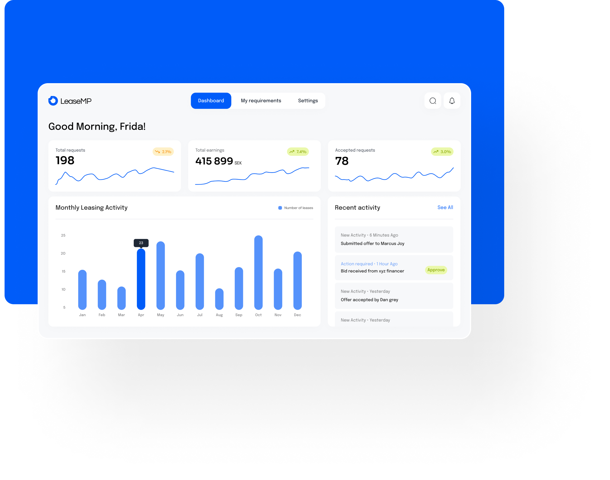 Lease MP is the digital solution that makes leasing simple and efficient for business owners. Quickly receive multiple offers from our connected lenders, allowing you to choose the best. Sign agreements directly through our platform for a smooth and secure experience.
